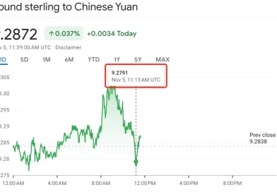 英镑汇率连续下跌 最低跌至9.27 图源:Google 近期英镑汇率连续下跌,就在今天(11月5日)英镑兑人民币跌至9.28! 前几天,委员还报道过英镑兑人民币
