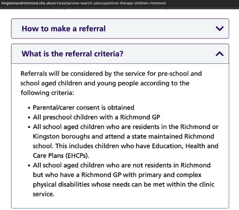 院方表示,该医院只诊治公立学校的孩子。院方的患儿推荐/诊治要求第三条和第四条写道,只有居住在该区的公立学校患儿,以及在该区GP注册过患有原发性复杂躯体残疾的儿童才符合要求。