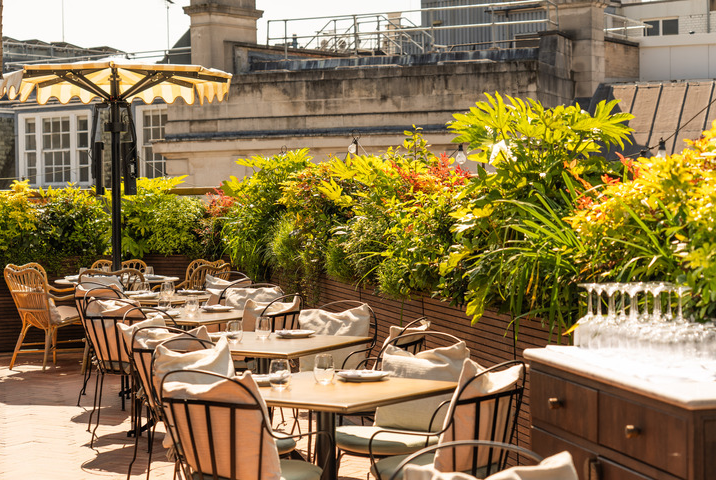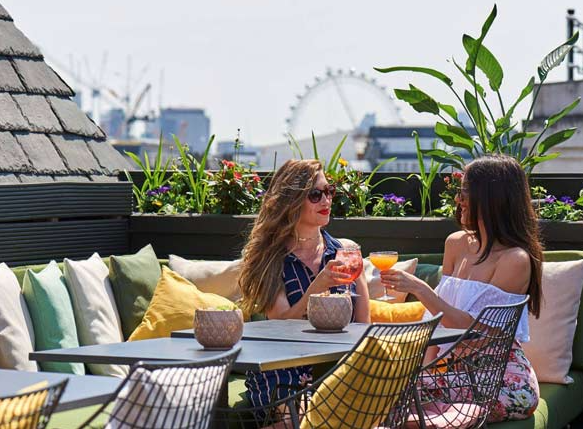 如果你是音乐剧迷,这间位于皇家剧院(Theatre Royal Drury Lane)顶楼的新兴露台简直是梦幻圣地。 不同于柯芬园地面层的拥挤,这里提供了一个可以优雅俯瞰「剧院区(Theatreland)」霓虹广告牌的高度。 你可以一边啜饮着香槟与创意调酒,一边对着远处各场大剧的广告牌指点江山,决定下一场要看哪一部。 露台上布满了盆栽,与周边充满历史感的剧院建筑交织出一种知性且浪漫的氛围。 在开演前的余晖中,或是散场后的微醺时分,这里都是感受伦敦文化心跳最直接的地方。 这种戏如人生、人生如戏的高空体会,只有在这里才能达成。