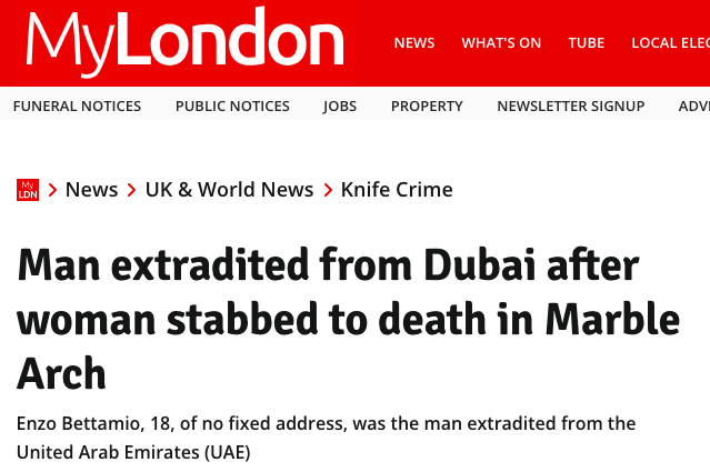 案件的复杂之处在于,这名嫌疑人在案发后迅速离开英国,前往迪拜。迪拜由于其国际交通枢纽地位,一直是人员流动频繁的地区,也给部分跨国案件的追踪带来难度。