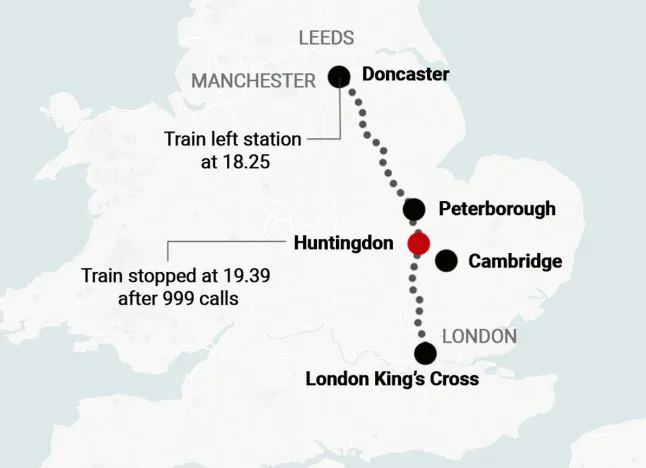 据悉,当晚列车在 Peterborough 站驶离后的十分钟内,其车厢内的乘客便遭到攻击。