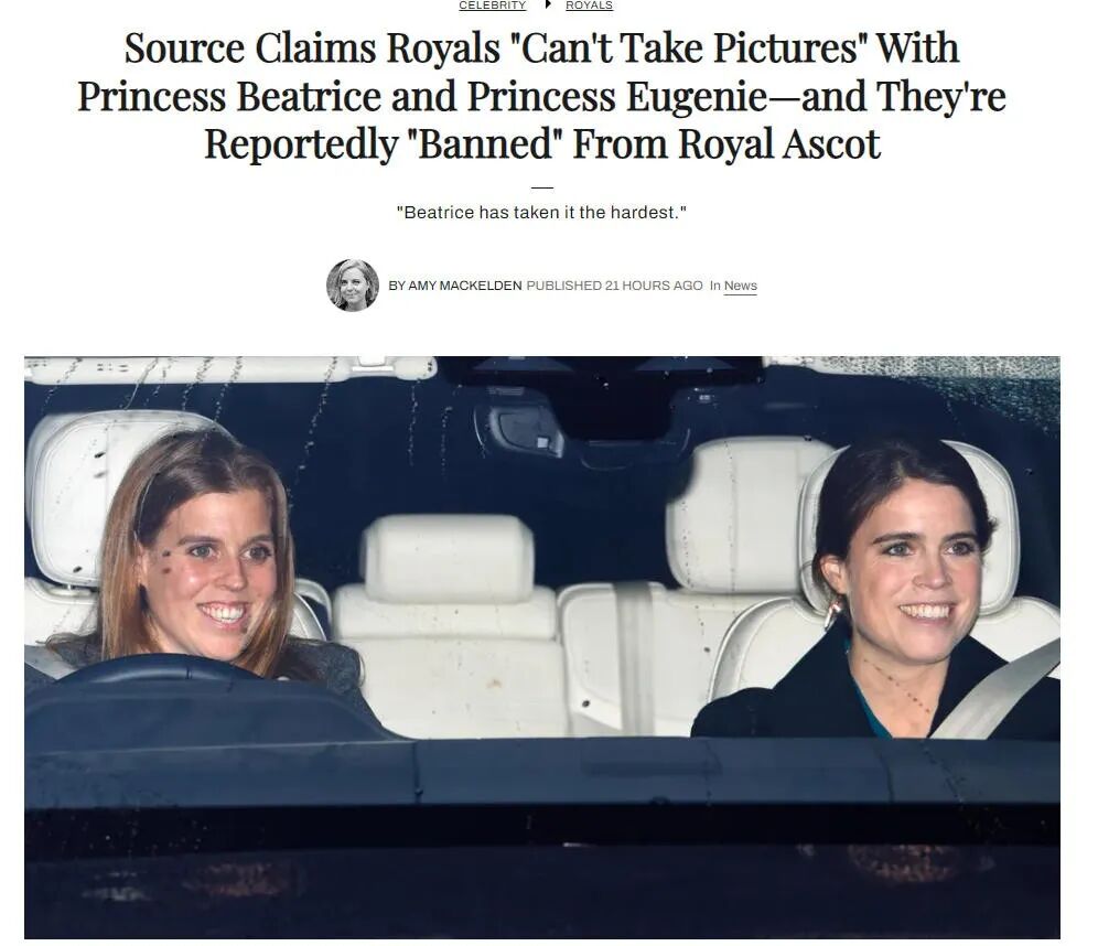 据最新报道,王室赛马会(Royal Ascot)已经拉黑了碧翠丝和尤金妮公主,并且在“可见的未来”中,她俩都不能再参加任何王室活动了。