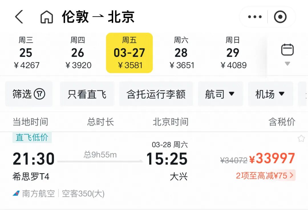3月底英国回国的直飞机票,甚至飙升到三四万一张的天价…别怀疑,这就是经济舱的票价。