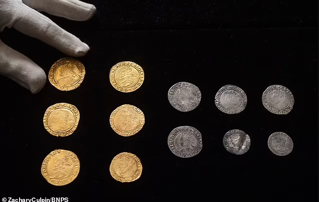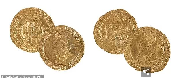 这些硬币保存质量完好,还包括罕见的詹姆斯一世金月桂硬币(1621-23 年)和查理一世金统一硬币(1626-27年),这两枚硬币的估价都为 2000英镑。