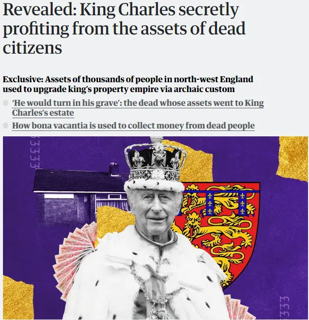 “无主遗产大揭秘;查尔斯王偷偷从过世的公民那里获益”