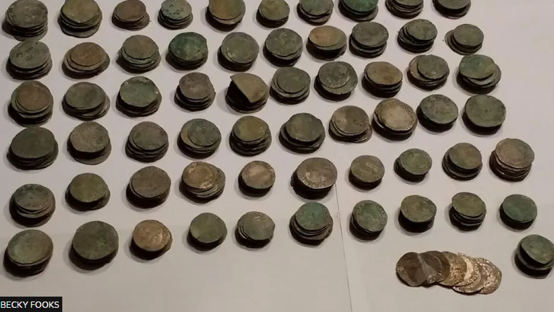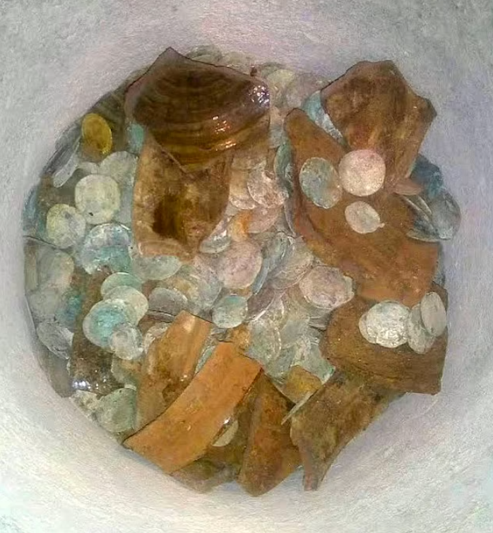 这些钱币的流通年间大约在1642-1644年,看起来似乎是当时的某个有钱人为了躲避战乱而埋到地下的。400多年过去了,钱币的主人没有回来认领,倒是让Fooks夫妇给找出来了。