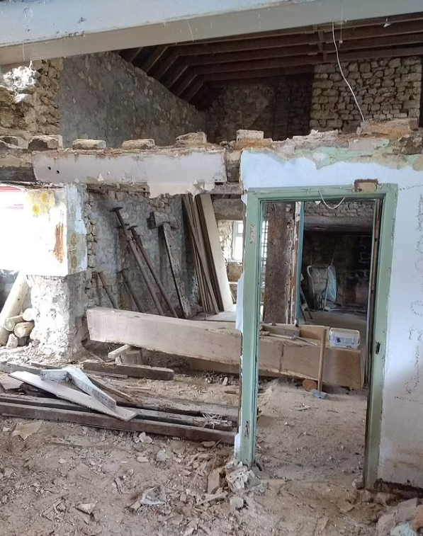 为了增加层高重建屋顶,Robert把地板凿开往下挖了个2英尺。