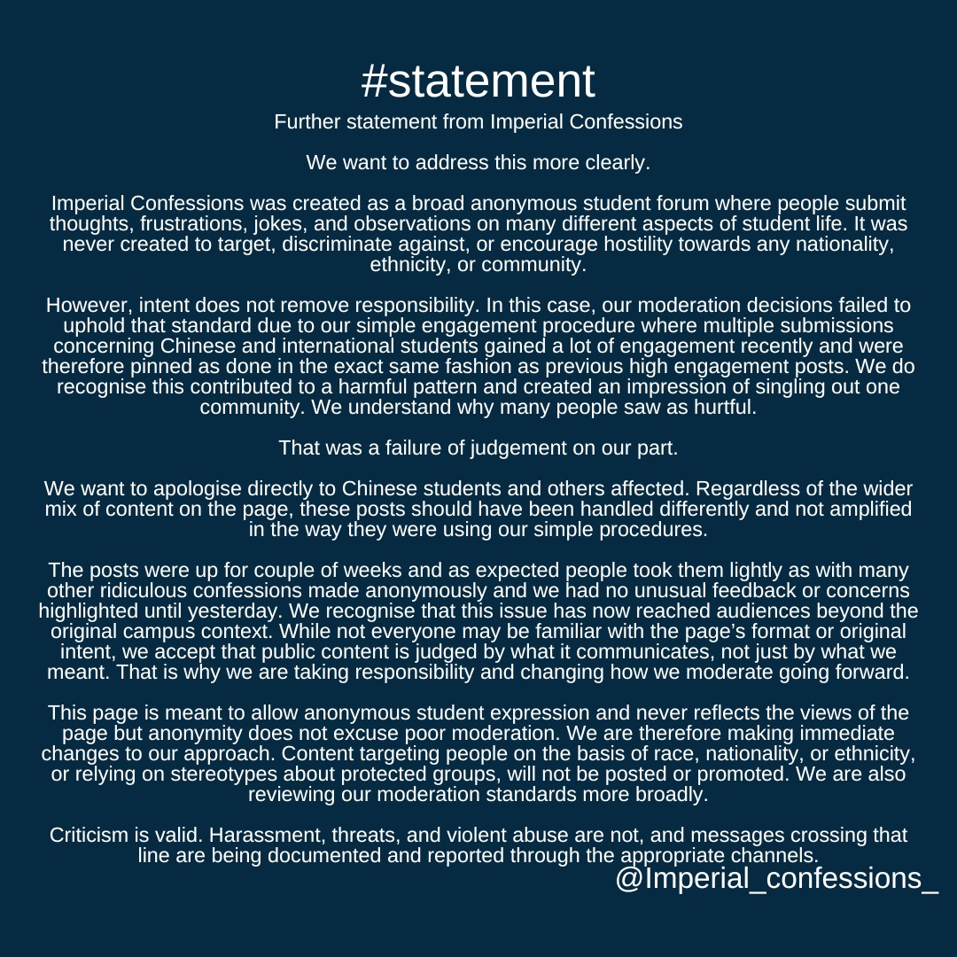 先简单回顾下。起因是一个叫“Imperial_Confessions_”的Ins账号,发了条帖子,内容大概是用一些老套的印象描述中国学生,比如过度依赖录音翻译、小组作业用AI“复制粘贴”导致沟通困难之类的。