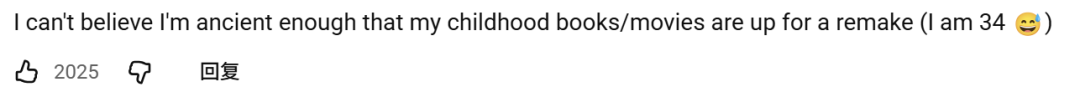 “今年34岁,真不敢相信我的年纪已经大到,儿时看的书和电影都开始翻拍了。”