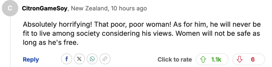 至于他,考虑到他的观点,他永远不适合在社会上生活。只要他逍遥法外,女性的安全就无法得到保障。”
