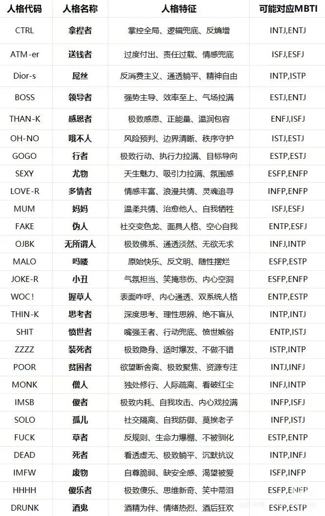 SBTI的爆火绝非偶然。它用”吗喽”(像猴子般被生活使唤的打工人)、”ATM-er”(为别人不停付出的老好人)、”死者”(躺平装死的 burnout 状态)等标签,撕碎了MBTI的”正能量”面具。正如网友所言:”MBTI是演给别人看的人设,SBTI是留给自己的真话。”