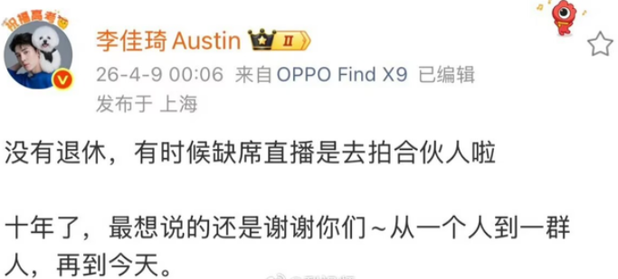 很快李佳琦发微博辟谣退休,解释自己是要去录制综艺~