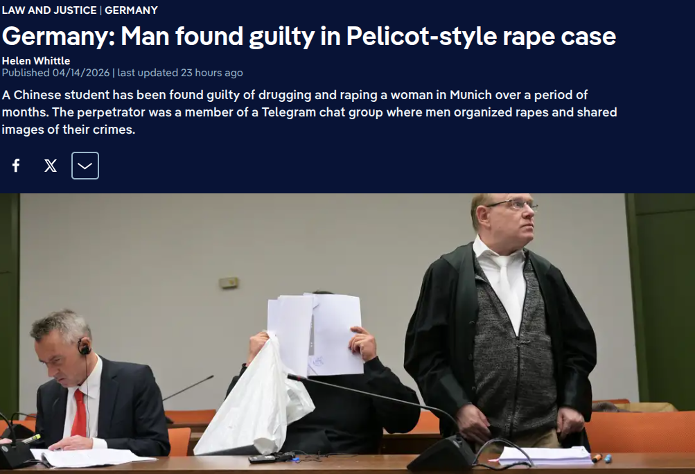 据德国多家媒体消息:就在最近,德国慕尼黑法院对一起性质极其恶劣的系列下药强奸案作出宣判,28岁的中国籍留学生Zhongyi J因犯有两项谋杀未遂罪和七项严重强奸罪,被判处有期徒刑11年零3个月。
